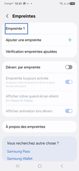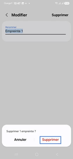 pour votre Samsung Galaxy A55 5G ou Modifier le téléphone sélectionnéSupprimer une empreinte digitale
