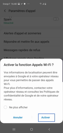 Activer les appels Wi-Fi