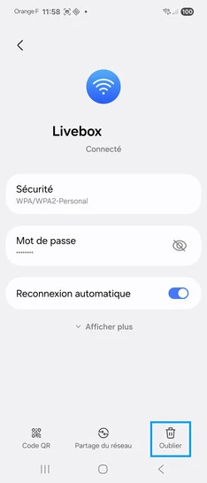 pour votre Samsung Galaxy Note 10 Lite ou Modifier le téléphone sélectionnéSupprimer une connexion wifi