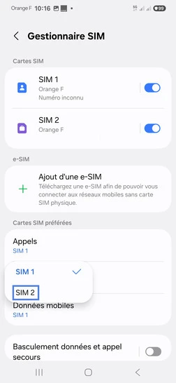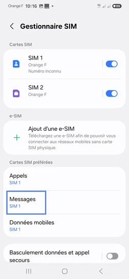 pour votre Samsung Galaxy Note 20 5G ou Modifier le téléphone sélectionnéChoisir la carte SIM pour les SMS