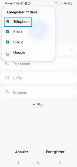 pour votre Samsung Galaxy S10e ou Modifier le téléphone sélectionnéAjouter un contact dans le répertoire