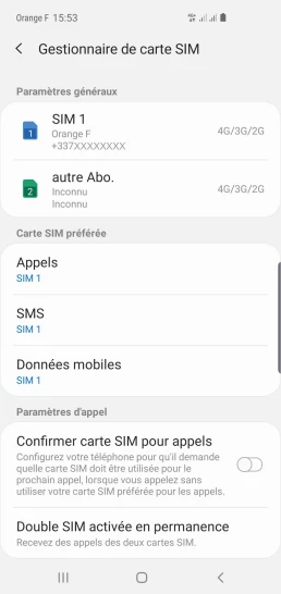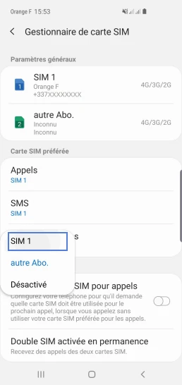 pour votre Samsung Galaxy S10e ou Modifier le téléphone sélectionnéChoisir la carte SIM pour les données mobile
