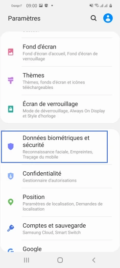 Étape 3 : Choisissez Données biométriques et sécurité.
