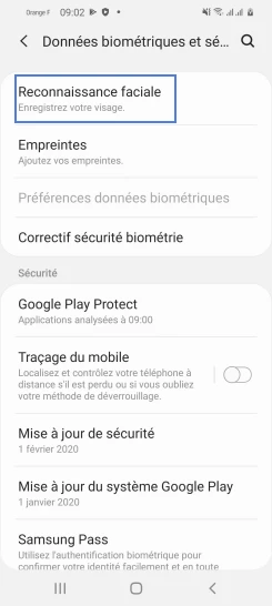 Étape 4 : Sélectionnez Reconnaissance faciale.