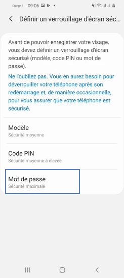 Étape 6 : Définissez un mode de verrouillage sécurisé de l'écran.Dans notre exemple, sélectionnez Mot de passe.