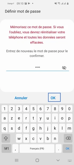Étape 9 : Confirmez votre code/mot de passe/schéma et validez avec OK.