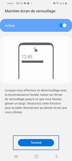 Étape 12 : L'enregistrement du visage se fait avec Terminé.