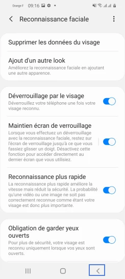 Étape 13 : Votre visage est enregistré.Sélectionnez la touche virtuelle Retour.