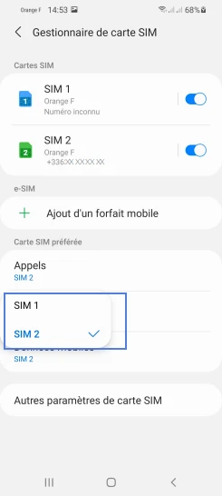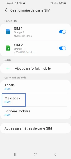 pour votre Samsung Galaxy S21 5G ou Modifier le téléphone sélectionnéChoisir la carte SIM pour les SMS