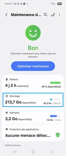 pour votre Samsung Galaxy S22 5G ou Modifier le téléphone sélectionnéOptimiser la mémoire