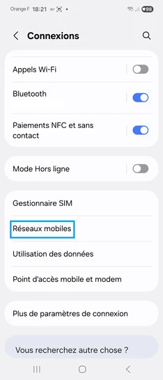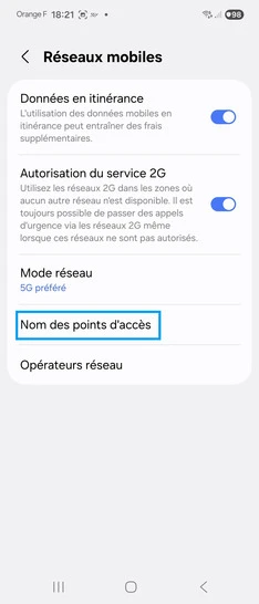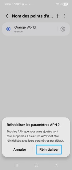 pour votre Samsung Galaxy S22 5G ou Modifier le téléphone sélectionnéRestaurer le point d’accès internet