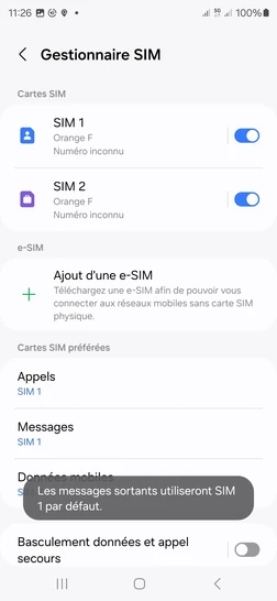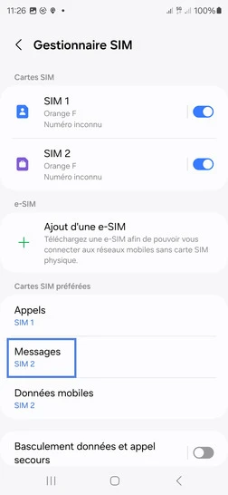 pour votre Samsung Galaxy S24 5G ou Modifier le téléphone sélectionnéChoisir la carte SIM pour les SMS