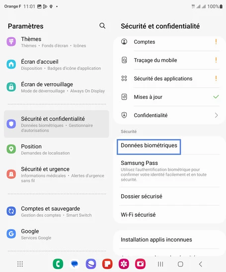 Étape 4 : Choisissez Données biométriques.