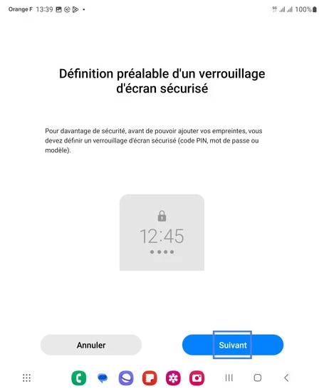 Étape 7 : Définissez un verrouillage de l'écran, allez sur Suivant.