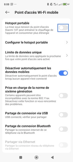 Le partage de connexion est activé.Nous sommes là pour vous assurer une transition fluide et sans souci, que vous souhaitiez connecter une tablette, un autre mobile ou un ordinateur.