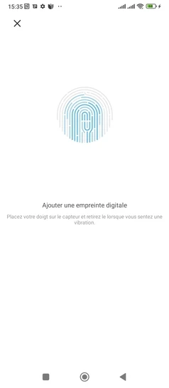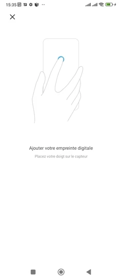 Placez votre doigt sur le capteur d'empreintes situé sur l'arrière du mobile et suivez les instructions en positionnant plusieurs fois votre doigt sur le capteur d'empreinte digitale pour commencer l'enregistrement de l'empreinte.