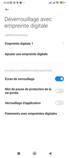 Sélectionnez Déverrouillage avec empreinte digitale.