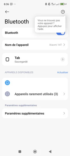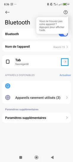 pour votre Xiaomi Redmi Note 11S ou Modifier le téléphone sélectionnéConnecter un équipement en bluetooth