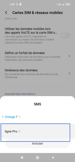 pour votre Xiaomi Redmi Note 9 ou Modifier le téléphone sélectionnéChoisir la carte SIM pour les SMS